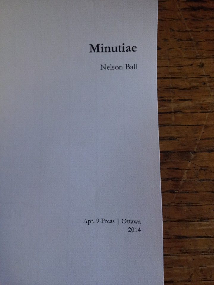 Apt. 9 is back in production. Printing is mostly done, and binding has begun on Minutiae from Nelson Ball, a hero of mine and the subject of a central chapter in my dissertation-to-be. It has been a real joy working on this book, and I can’t wait for people to read it.
