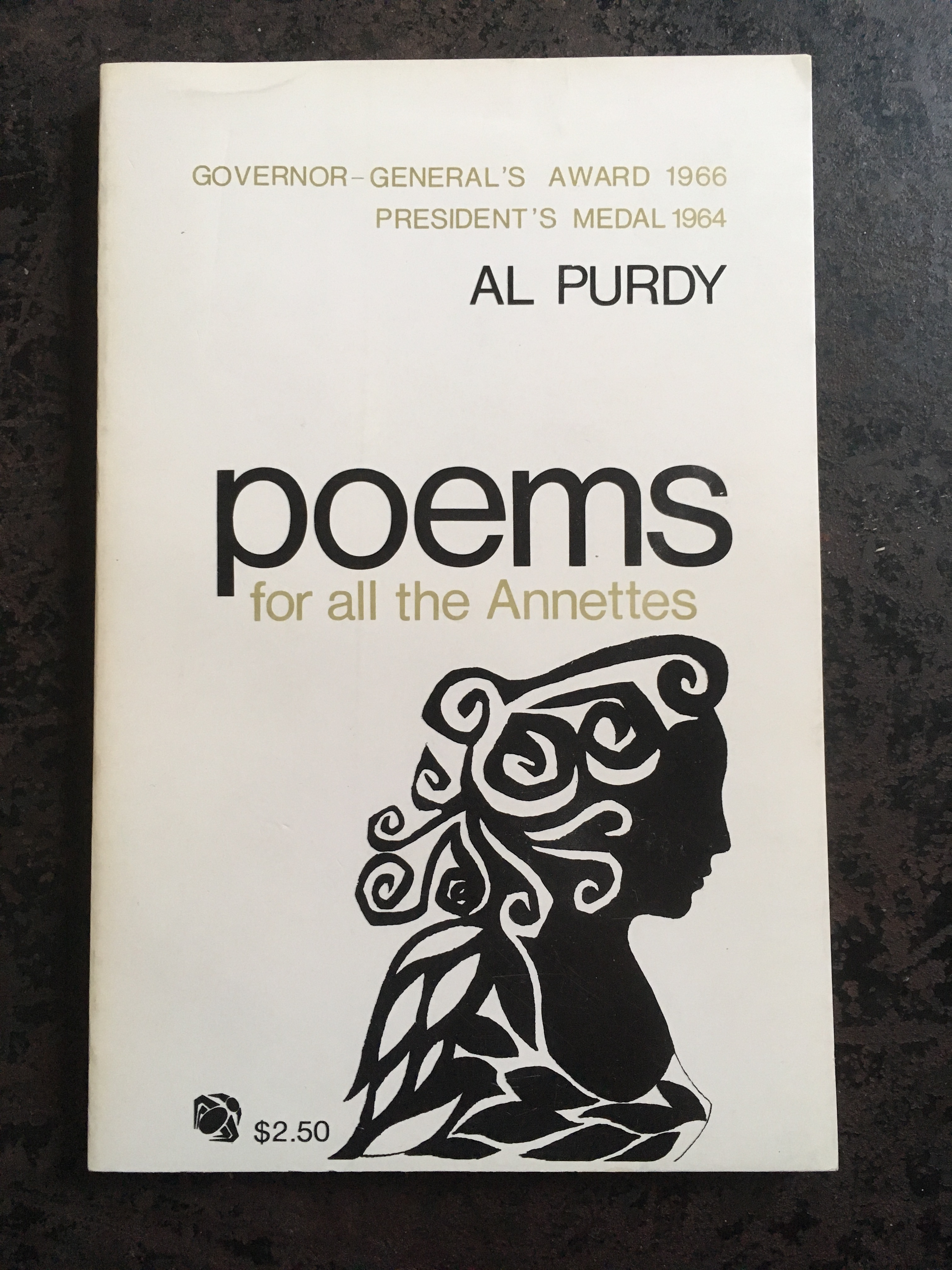 Al Purdy’s Poems for all the Annettes, published by Contact Press in 1962 and reprinted by House of Anansi in 1968. This is, obviously, the reprint.
