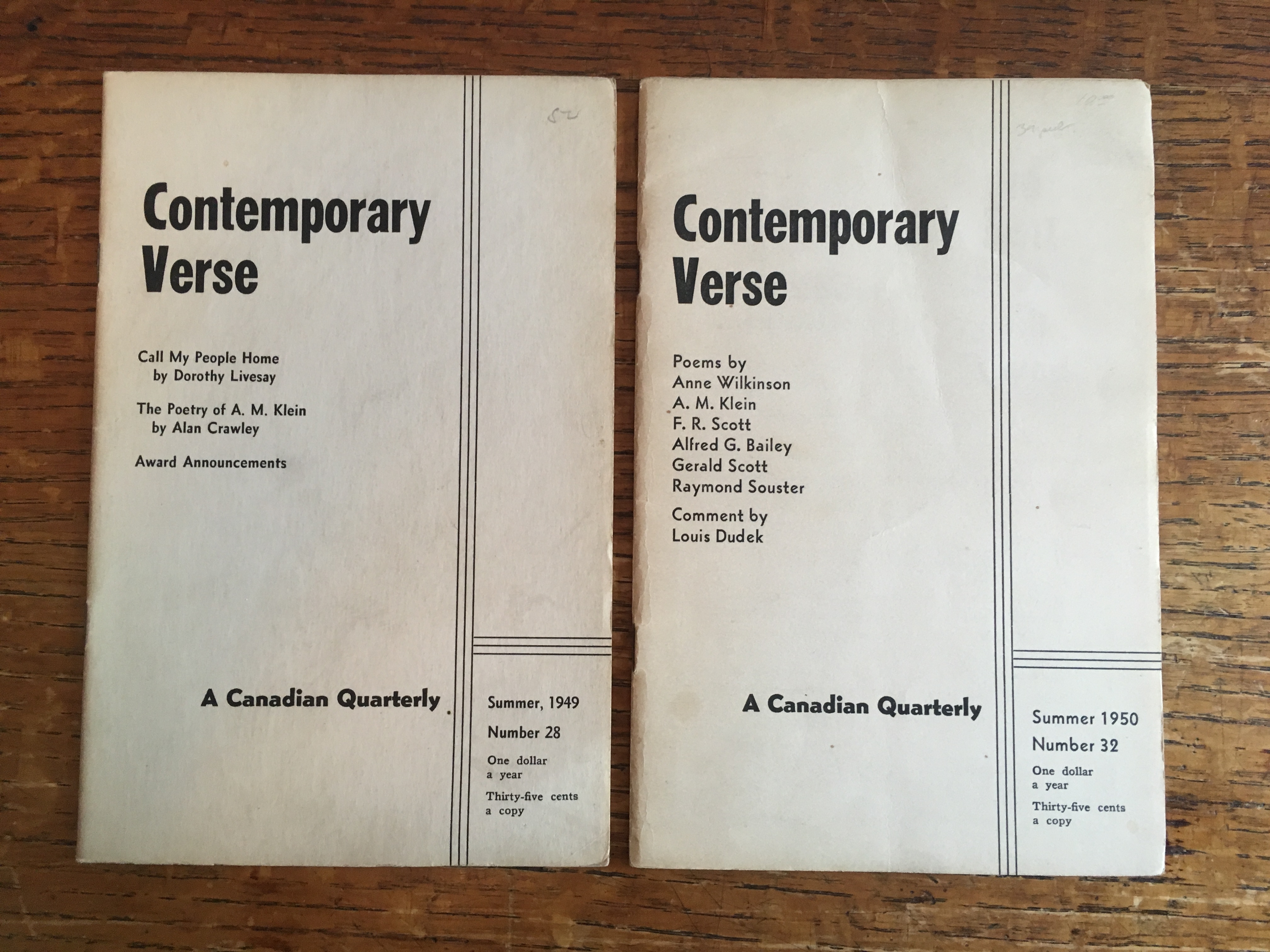 Contemporary Verse, edited for 39 issues by Alan Crawley from 1941-1952. A precedent for and spiritual contemporary of Contact magazine.