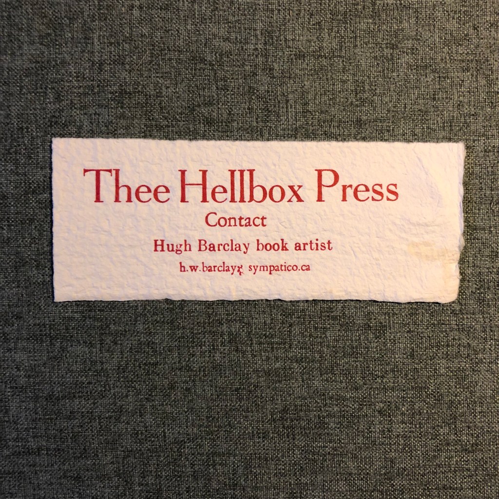 Hugh’s work shows up in places in the written history of the small and fine press in Canada. Here is a brief paragraph about Thee Hellbox from Fine Printing: The Private Press in Canada (1995):