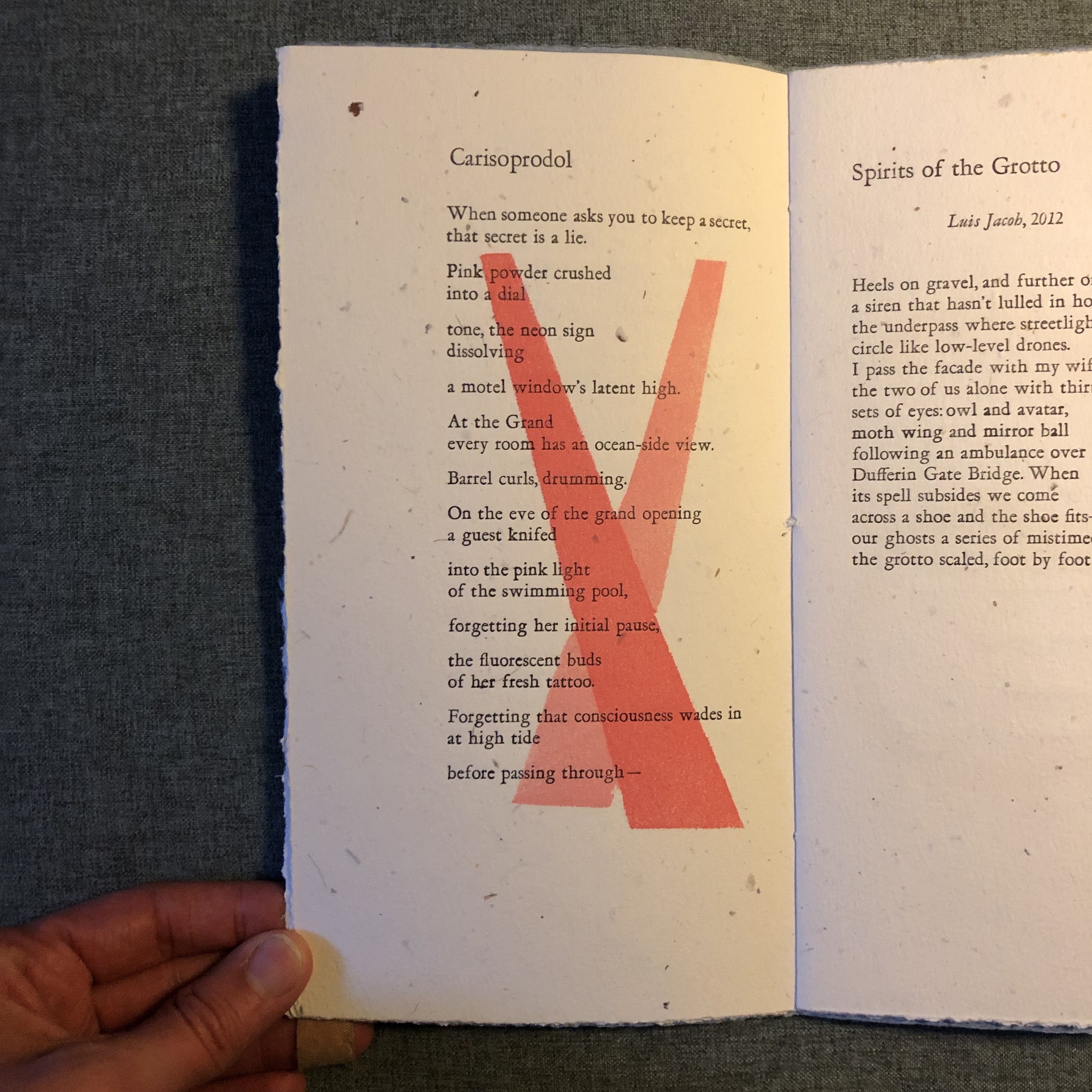 The entire book was typed on Bill’s typewriter, and an erasure of his 1966 book Ottawa Poems is the centrepiece of the collection. Writing it pushed my meager typewriter skills to their limits and ultimately moved my writing further into a visual/concrete realm than it had been before. It is very much still a book of minimalist works, but ones that are perhaps expansive in ways that are new for my work. It includes an afterword and extensive notes, and I had the great pleasure of working with derek beaulieu as my editor. I also could not be happier with the cover design by Megan Fildes, which adapts a piece from the book, and am thrilled to be working with Invisible once again. Pearl Pirie asked me a couple questions about the book as part of a series of mini interviews she has been doing for forthcoming books, and the interview includes two pieces from the book if you’re interested in a preview (thanks Pearl!).