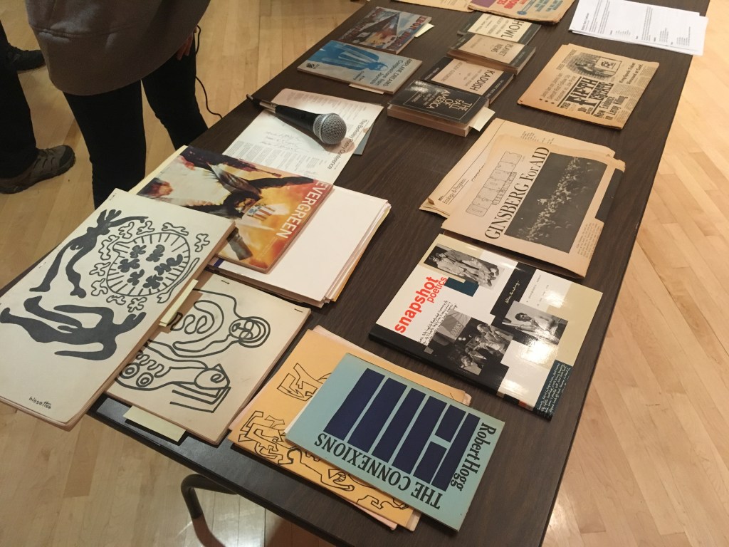 I hosted a panel about the Beats and Ottawa in 2016 at the Carleton University Art Gallery. It was Bob, Roy MacSkimming, and Rob Holton, discussing the experience of seeing Allen Ginsberg read at Carleton in the 1960s and the later influence of Beat writing on their lives and careers, all set against an exhibition of Ginsberg’s photographs. What a great night that was, with tables full of books and ephemera and posters, much of which came from Bob’s office. I also remember an earlier panel at VerseFest (maybe in 2014?), with Bob and William Hawkins, during which there was a screening of a documentary about the conference, followed by Bob and Bill reminiscing about it.