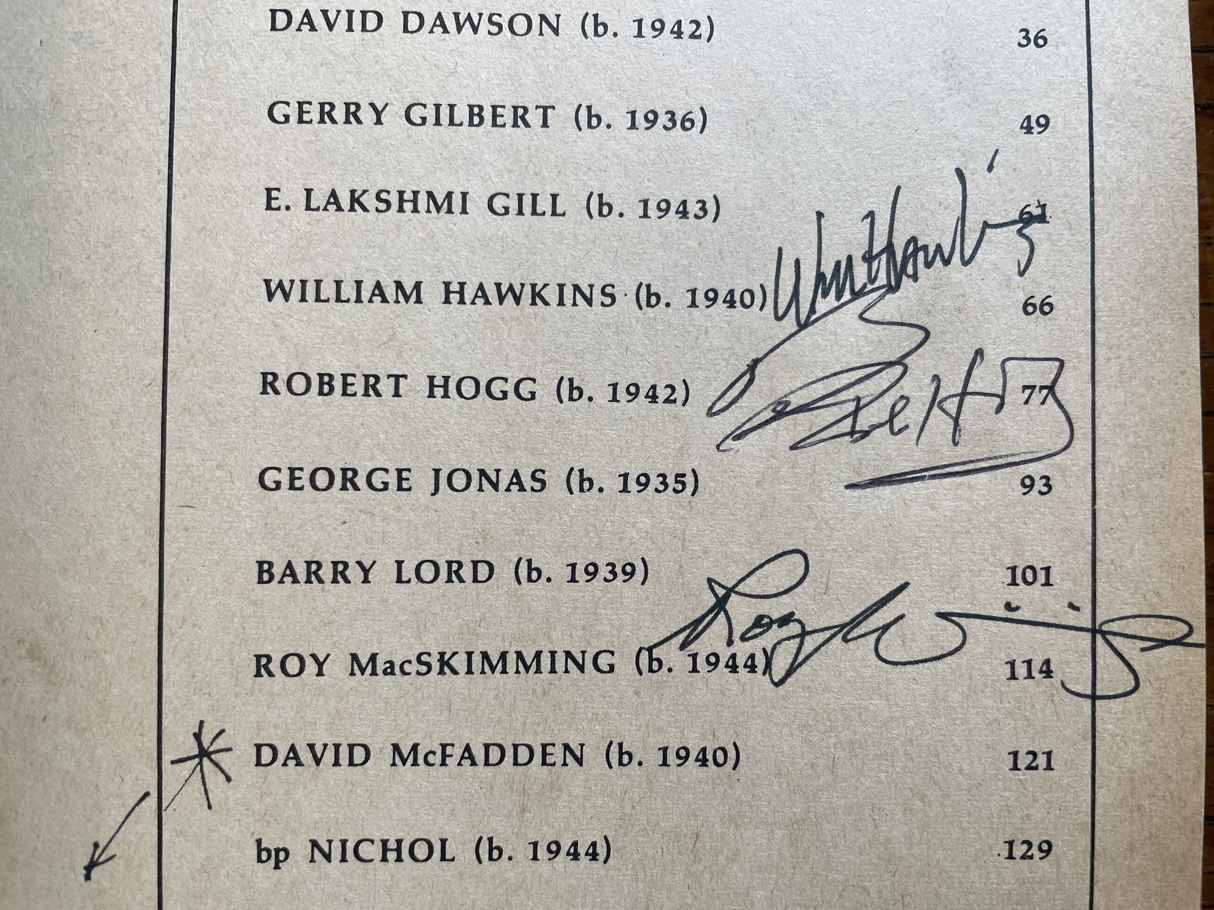 His work appeared in New Wave Canada in 1966, the seminal anthology edited by Raymond Souster for Contact Press that established many of the primary directions of Canadian poetry in the decades that followed, and in Modern Canadian Verse in 1967, edited by A.J.M. Smith for Oxford University Press, alongside the Atwoods and Ondaatjes and McFaddens of Canadian Literature.