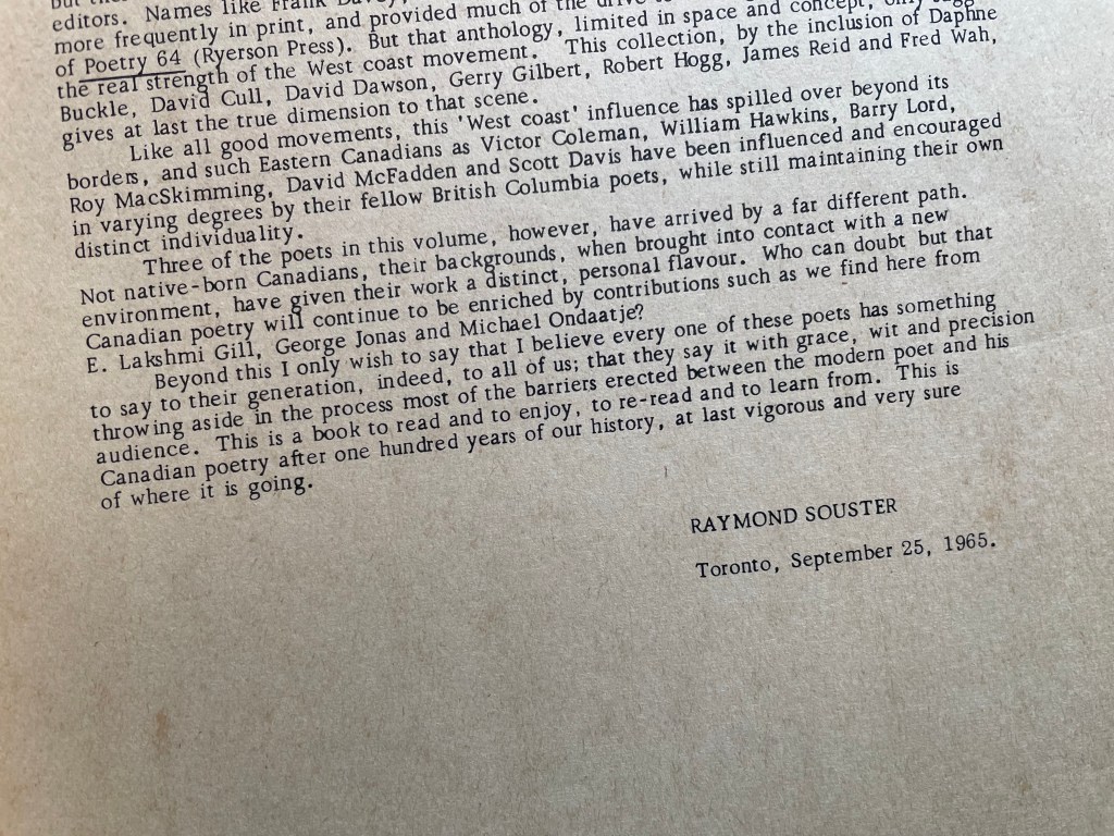 The Making of Modern Poetry in Canada did just what it’s long but precise suggested, it gathered primary documents from formative moments in the history of modern Canadian poetry. Like all of us, he had his favourites—poets, editors, presses, magazines—and so those biases shaped where his and Dudek’s scholarship focused. It was a book that staked out a space that he and Dudek felt was important. In making those claims, the space became visible and this created a frame within which one could work, or against which one could react from the outside. It was a book that sparked more work.