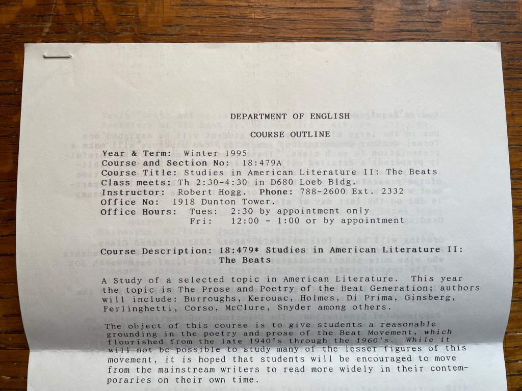 I knew Bob primarily as a poet and so will speak of him here primarily as a poet, but long before I understood his contributions to poetry in this country, he was a presence in my life through my dad, Rod Anstee. They had Kerouac and the Beat Generation in common. They travelled together to NYC in 1994 for a Beat conference at NYU, and to Montreal where Bob introduced my dad to Allen Ginsberg. I have the faintest memory of visiting an office in Dunton Tower with my dad, probably in the early 90s or late 80s, a gloriously disordered office that must have been Bob’s. I remember that among dad’s books, which I understood to be important, were Bob’s books, and so they too were important. Dad and mom spoke of Bob with such respect in our house that even as a child it carried weight for me. When I got to know Bob myself, I of course understood immediately.
