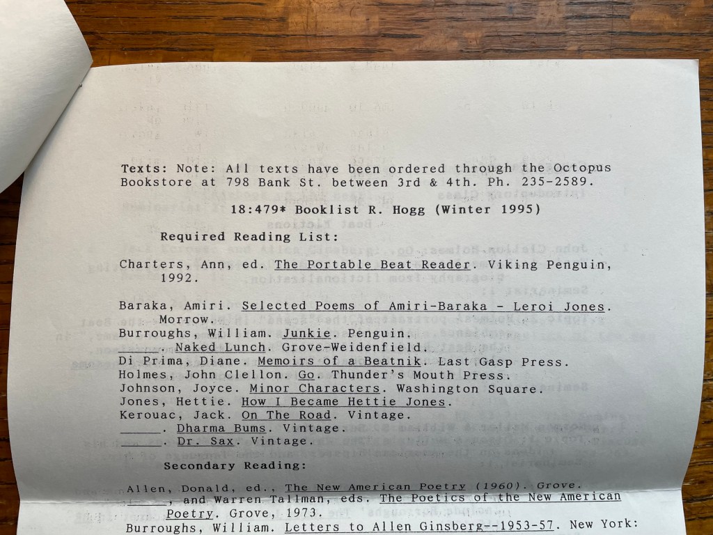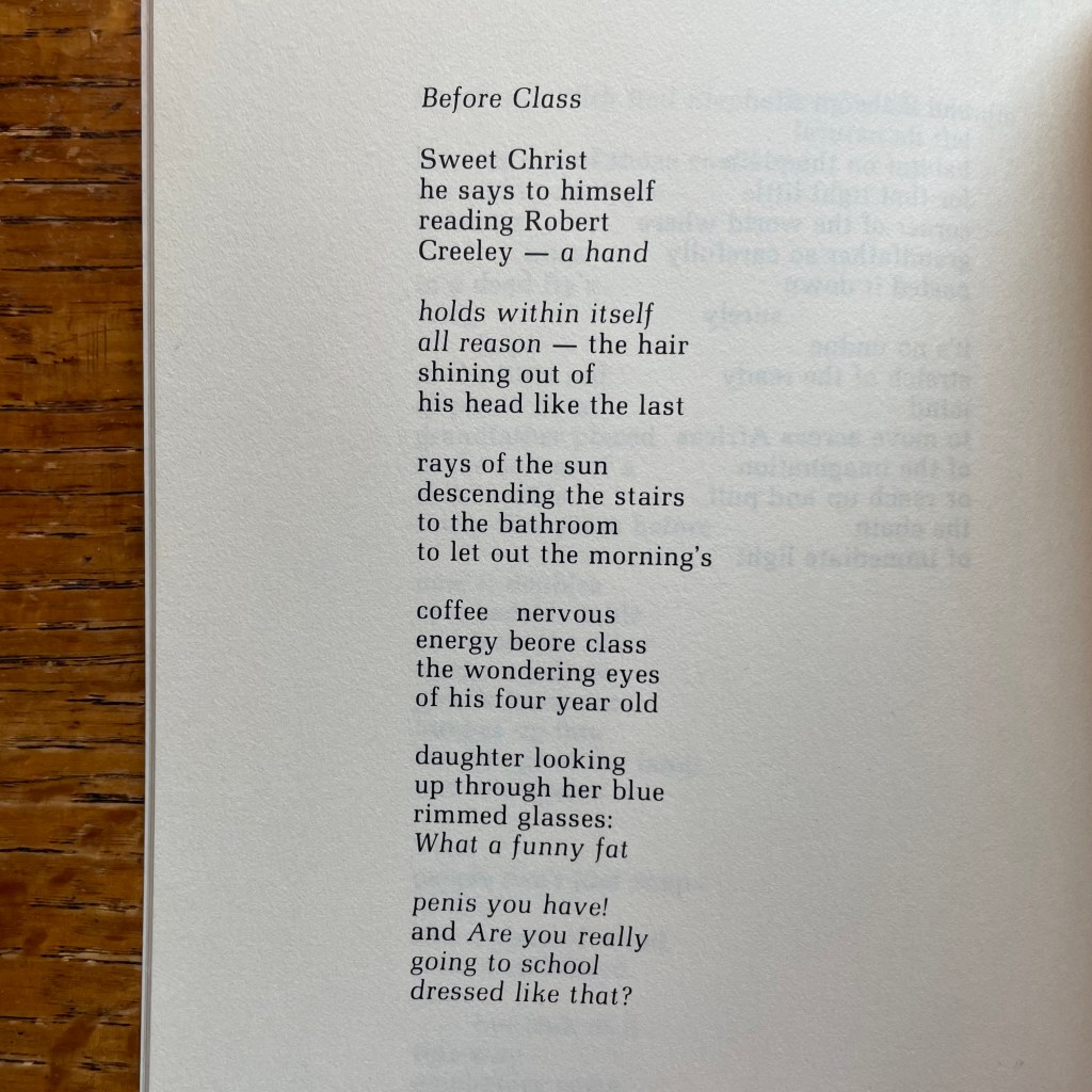 He was an editor at magazines TISH and MOTION. He studied at SUNY Buffalo under Charles Olson, on whom he later wrote his dissertation under Robert Creeley. He taught Literature at Carleton University for close to 40 years, while also somehow finding time to become an organic farmer and operate an organic flour mill. He retired from Carleton around the time I started there as an undergrad, and I wish that I could have sat in on one of his classes. My dad audited a Beat course he taught in the 90s, the syllabus of which is still tucked into my copy of Of Light.