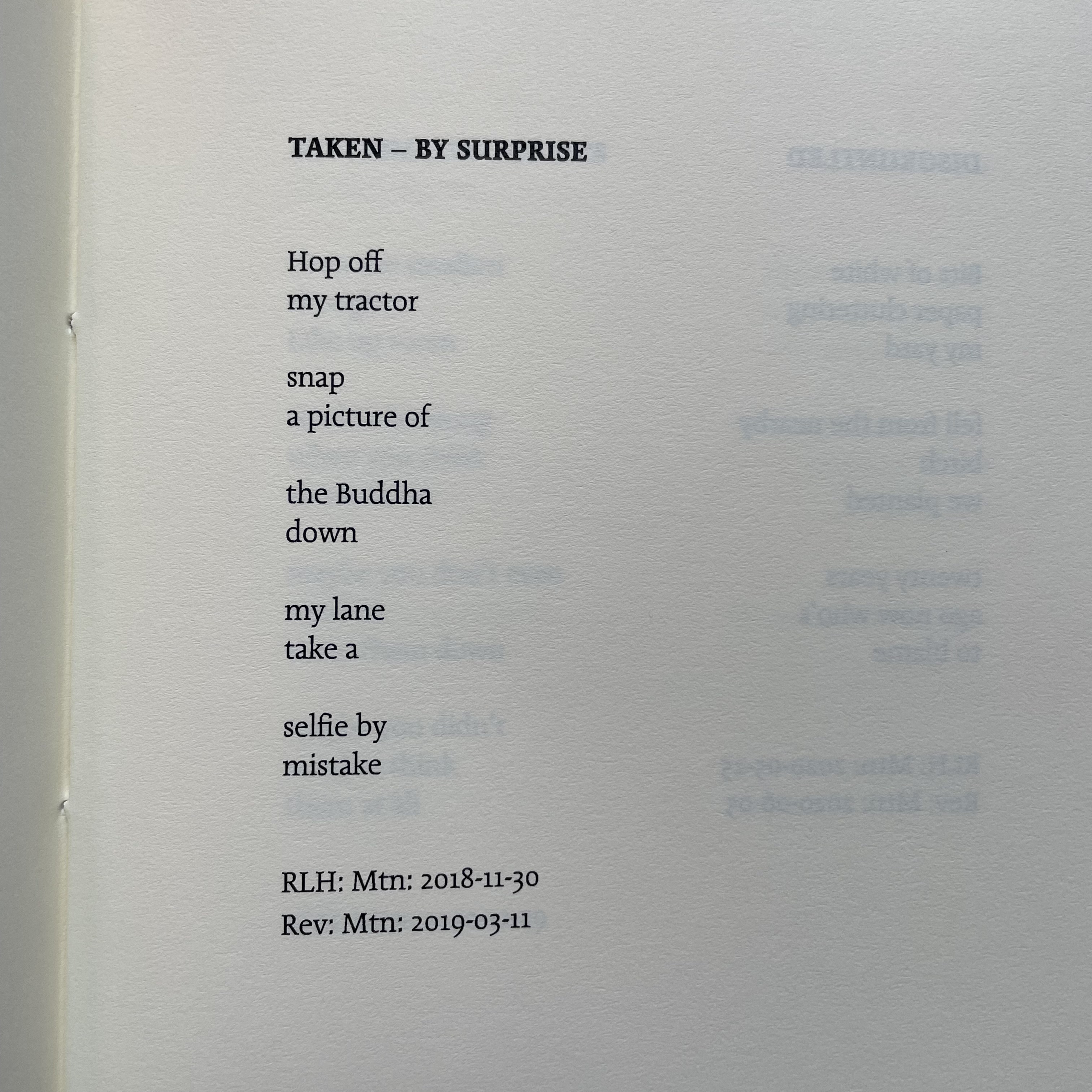 The final act of his writing life was notably productive. While it has been close to thirty years since his most recent trade book, others are reportedly forthcoming (with Chax and Ekstasis). There were chapbooks—from above/ground, and battleaxe, and Apt. 9, and Trainwreck, and Hawkweed, and his own Hogwallow. He published in magazines near and far, in print and online, and offered a steady stream of brand new poems on his Facebook account.